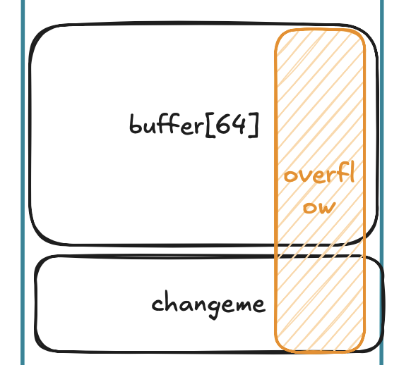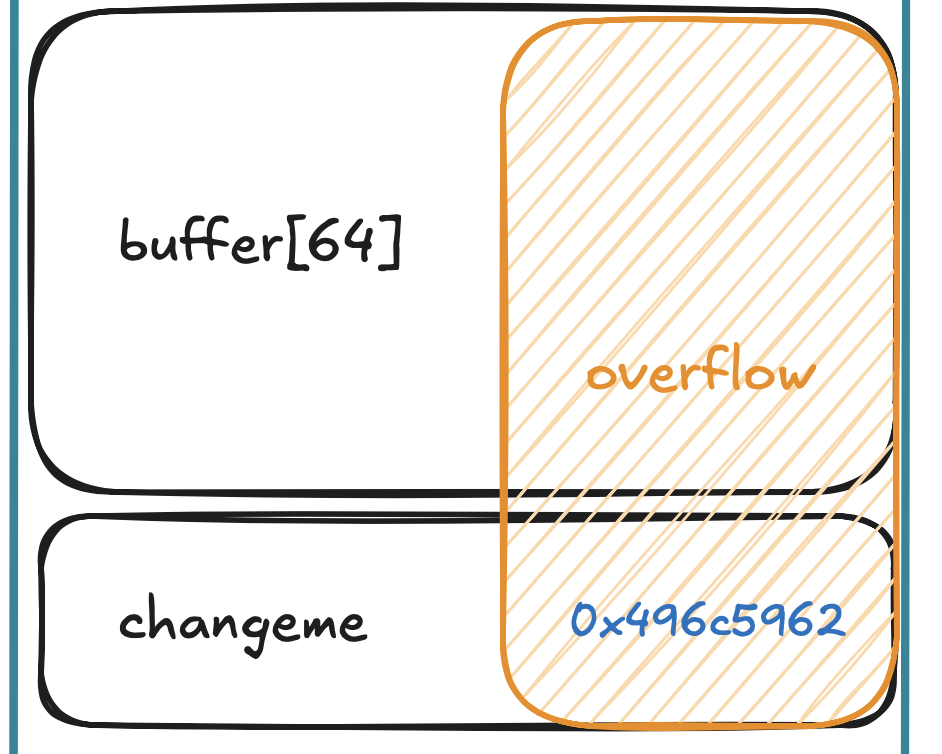 La structure étant stockée de manière contiguë en mémoire, écrire au-delà de buffer[64] écrase directement la variable changeme.
